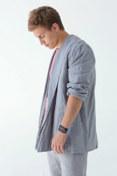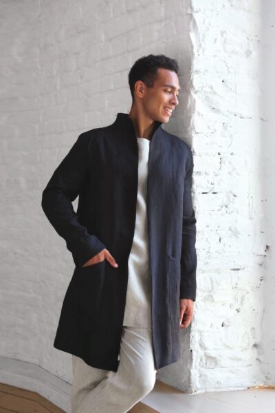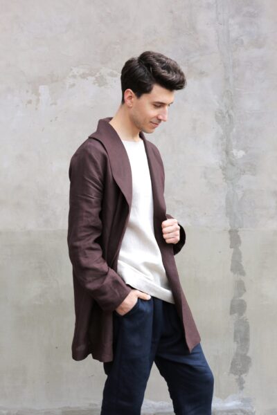Linen Cardigan Artisan Detail Linen Fabric for Men Soft Contour Travel Companion