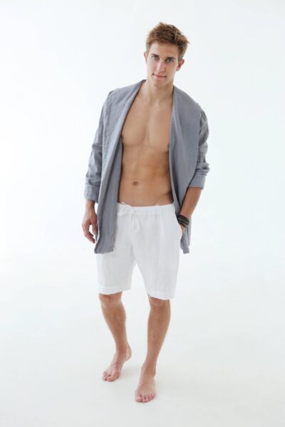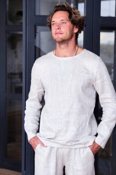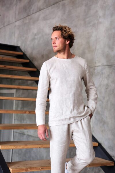 Linen Cardigan Ivory Warmth Linen Fabric for Men Classic Draping Slow Living Days
