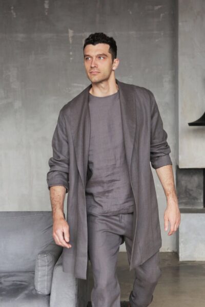 Linen Cardigan Layered Simplicity Linen Fabric for Men Relaxed Fit Gift for Him