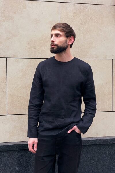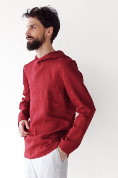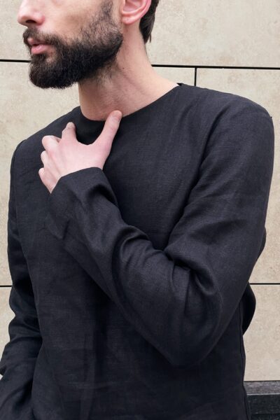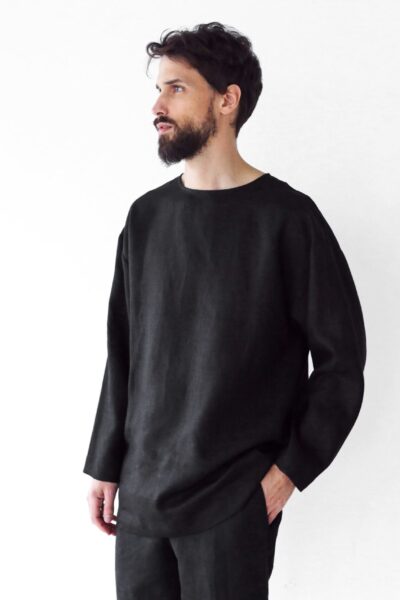 Linen Pullover Shirt Stonewashed Look Linen for Men Boxy Shape