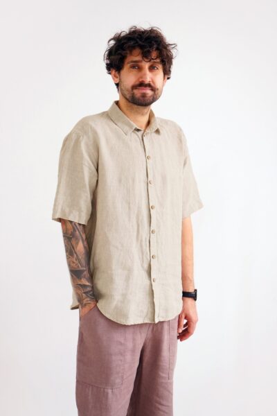 Relaxed Linen Shirt Sand Tone Linen for Men Casual Fit