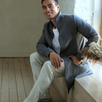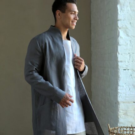 Linen Cardigan for man. Dark grey Men’s Linen Trench made from 100% Linen and available in a variety of colors.