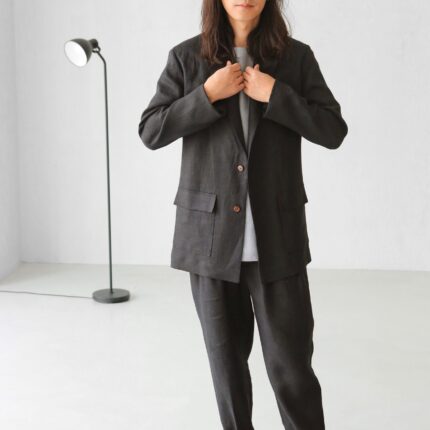 Men's linen Jacket. Color in the picture – Black. Men’s Linen Cardigan made from 100% Linen and available in a
