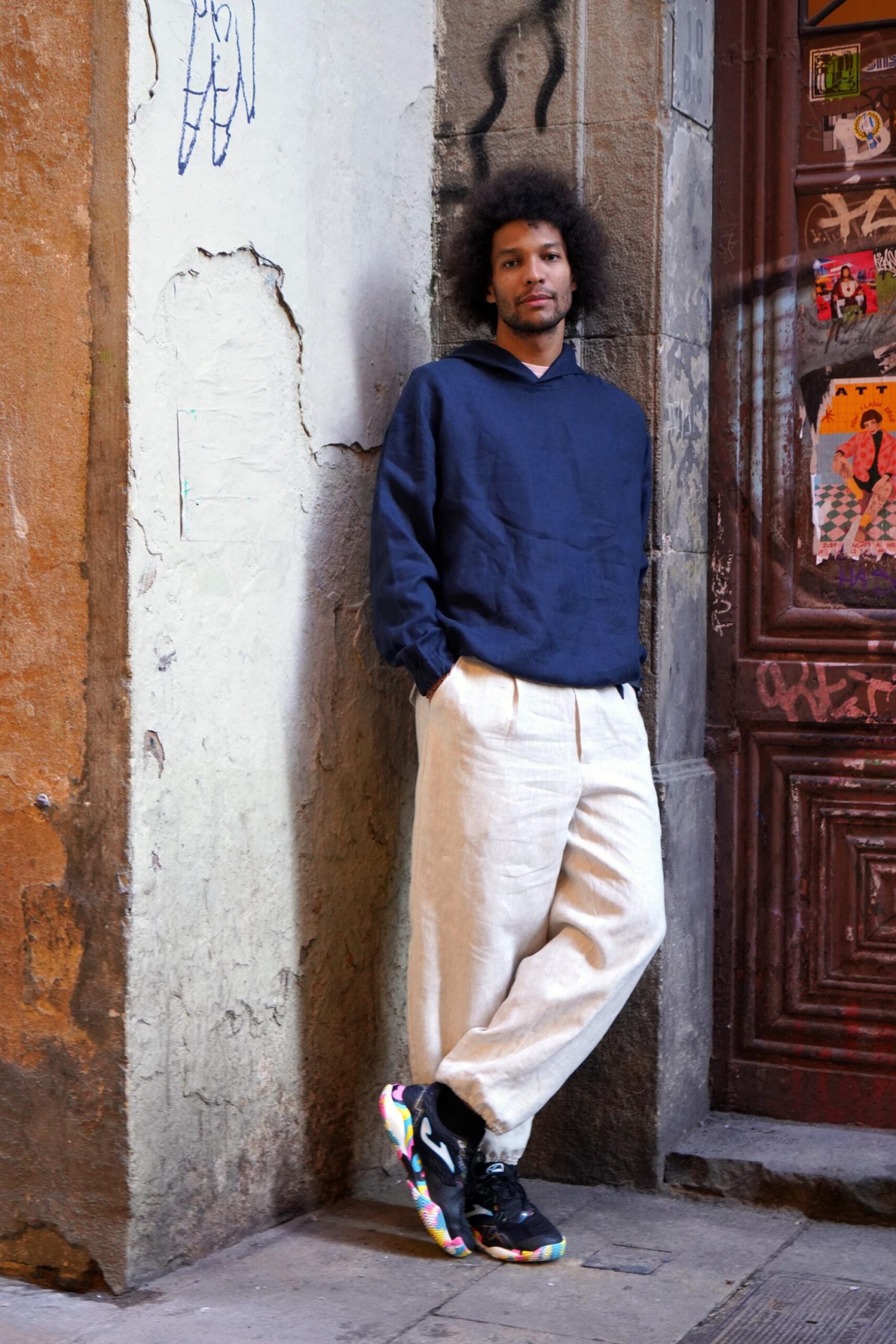 Linen has natural antibacterial properties, absorbs moisture, and allows the skin to breathe. Over time, it gets softer, making the hoodie even more comfortable with each wear.