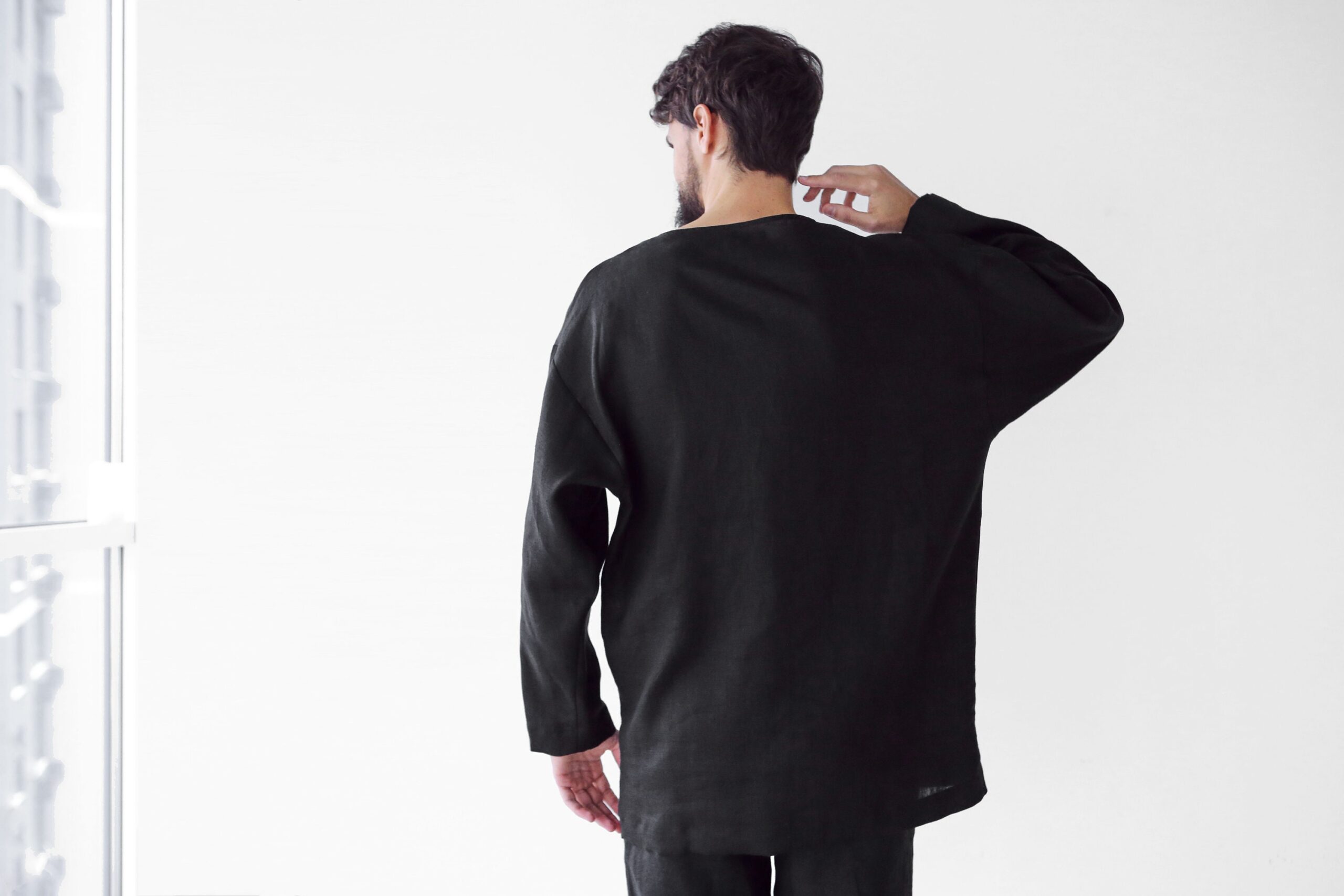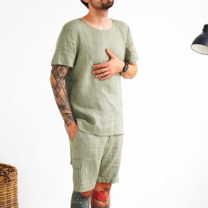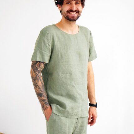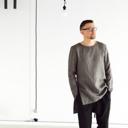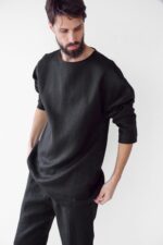 Natural linen. The fabric is natural and takes the body shape, over time it becomes softer. Men’s Linen sweatshirt makes a luxurious and functional gift for that special man in your life.