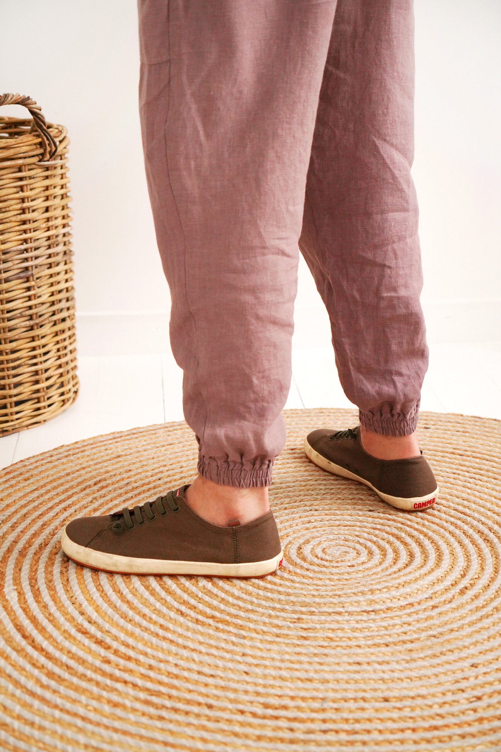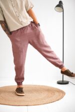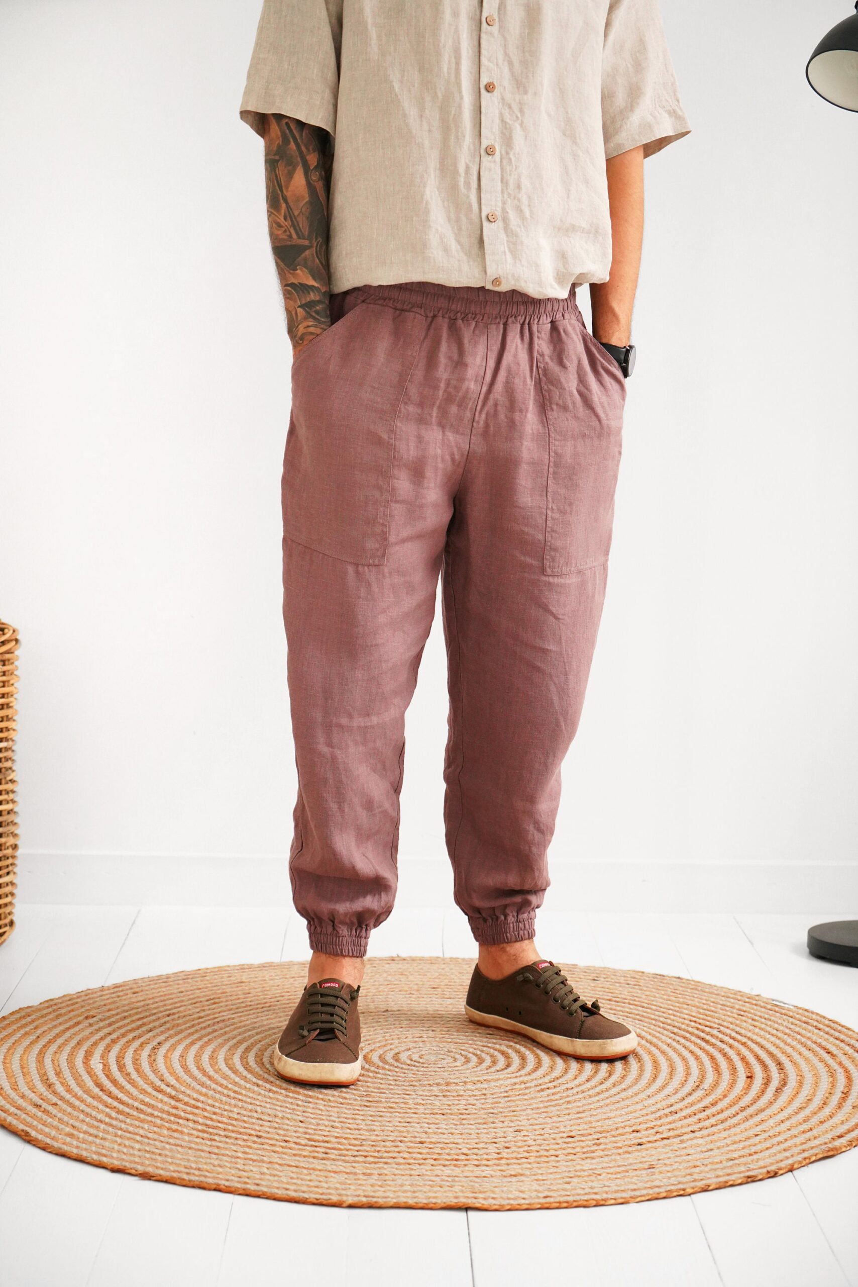 Drawstring Linen Pants Beige Mood Linen for Men Structured Profile