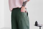 Loose-fit pants are made from 100% Linen and available in a variety of colors.