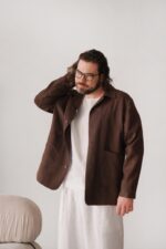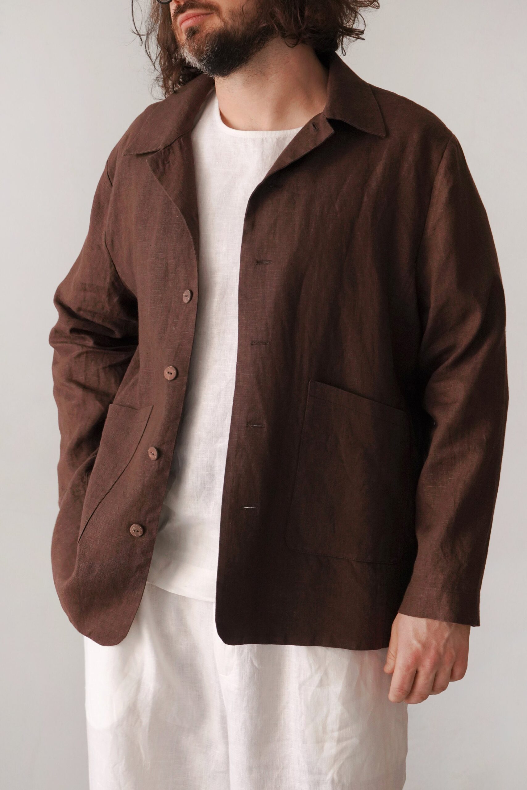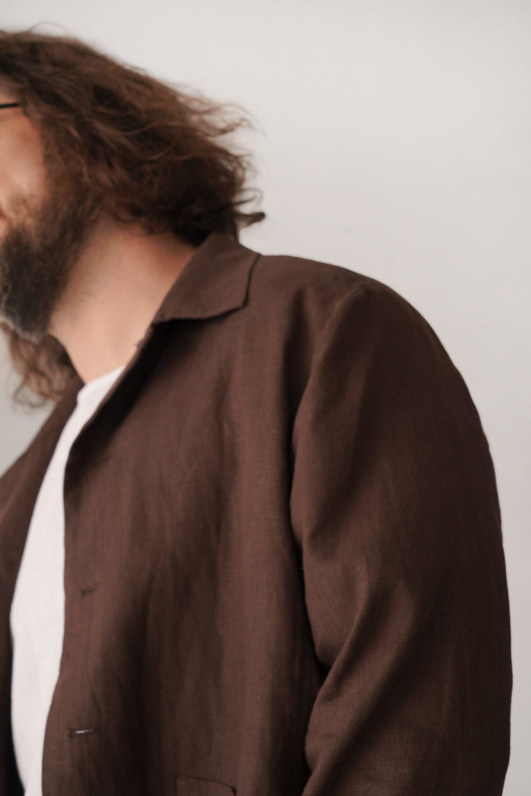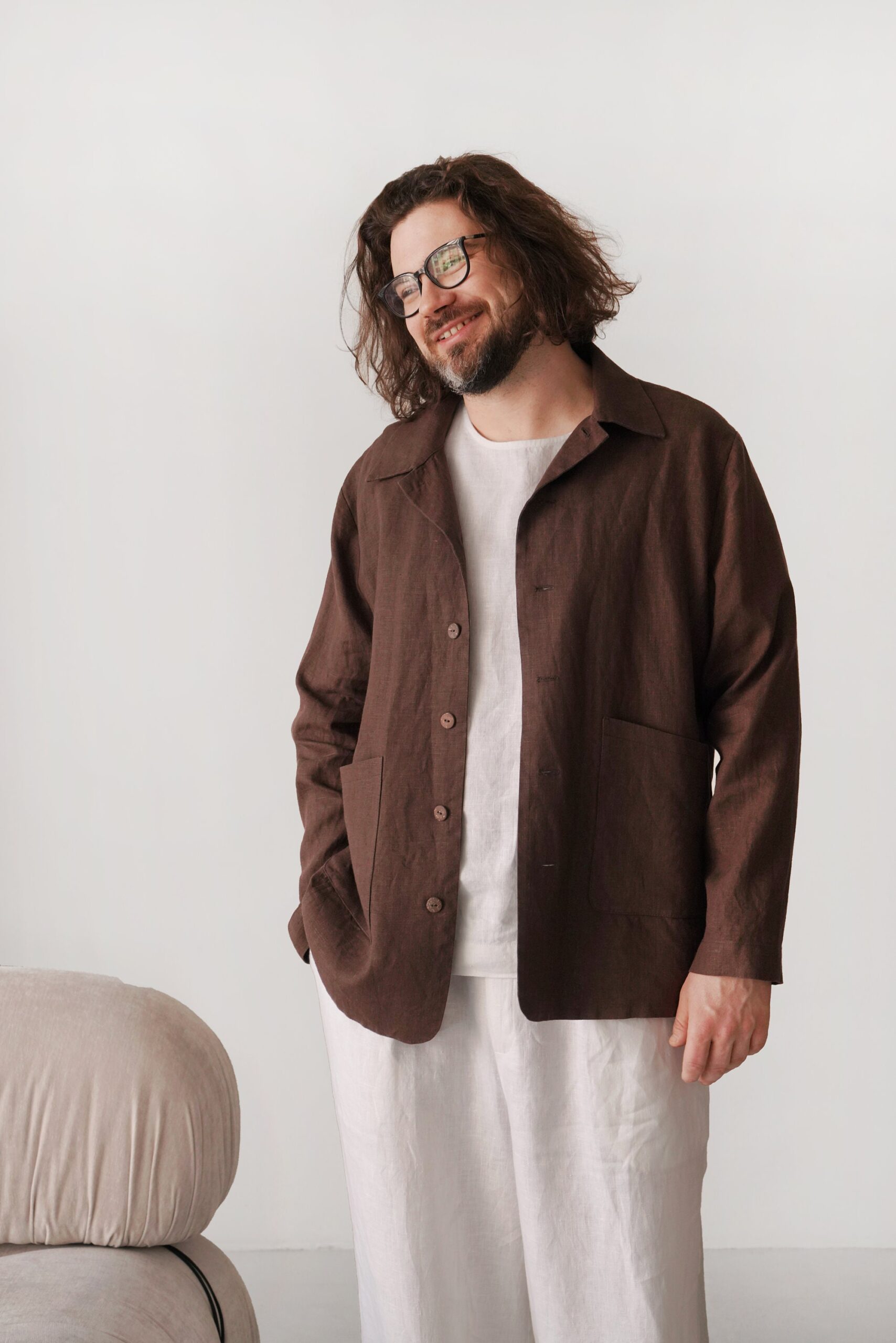 Linen Cardigan Crisp Formal Linen Fabric for Men Relaxed Fit Gift for Him