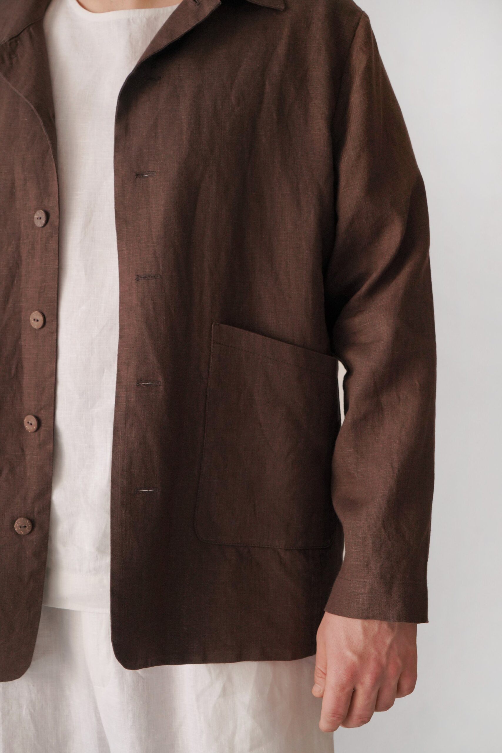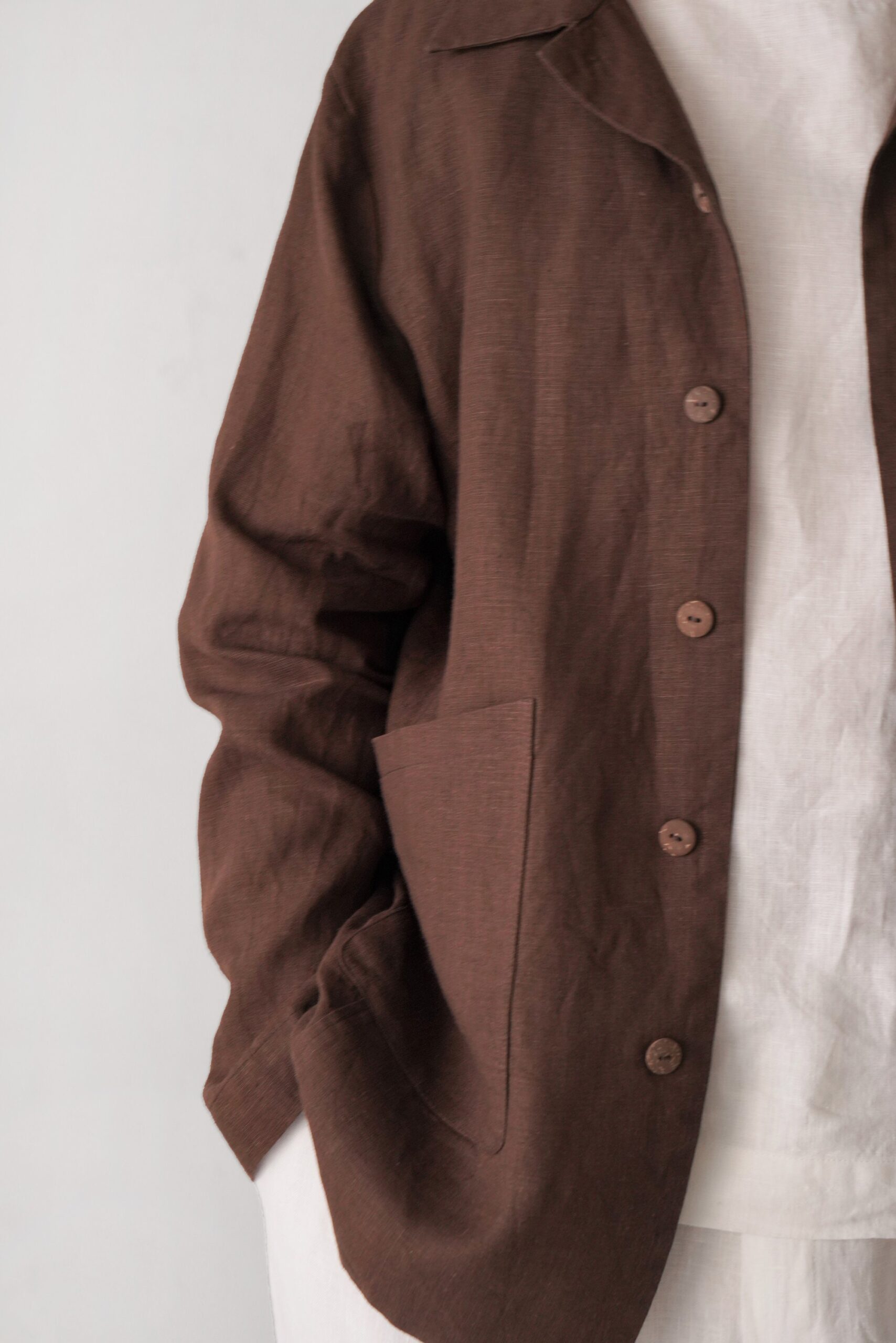 This jacket is made from 100% Linen and is available in a variety of colors.