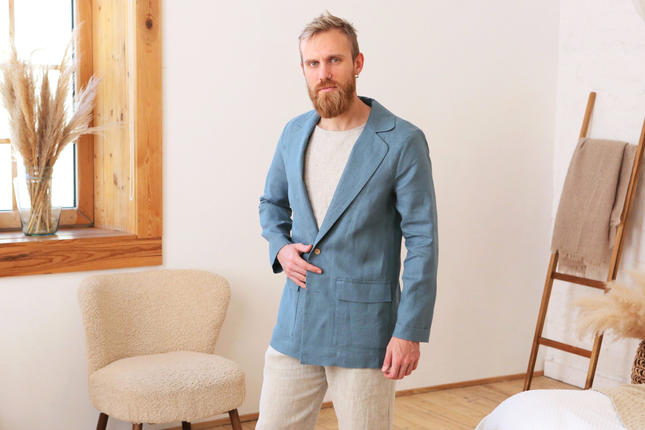 Men's linen Jacket. Wedding Blazer.