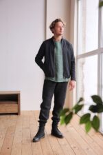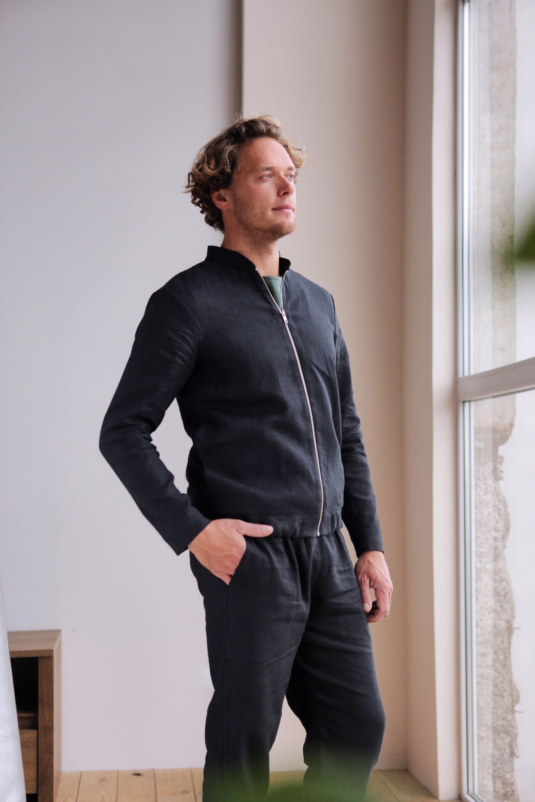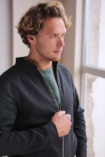 Comfortable and stylish men's bomber jacket. This bomber jacket is versatile, wear it on the street, at the office, at business meetings, or at home. The natural fabric molds to your body shape and over time become softer.