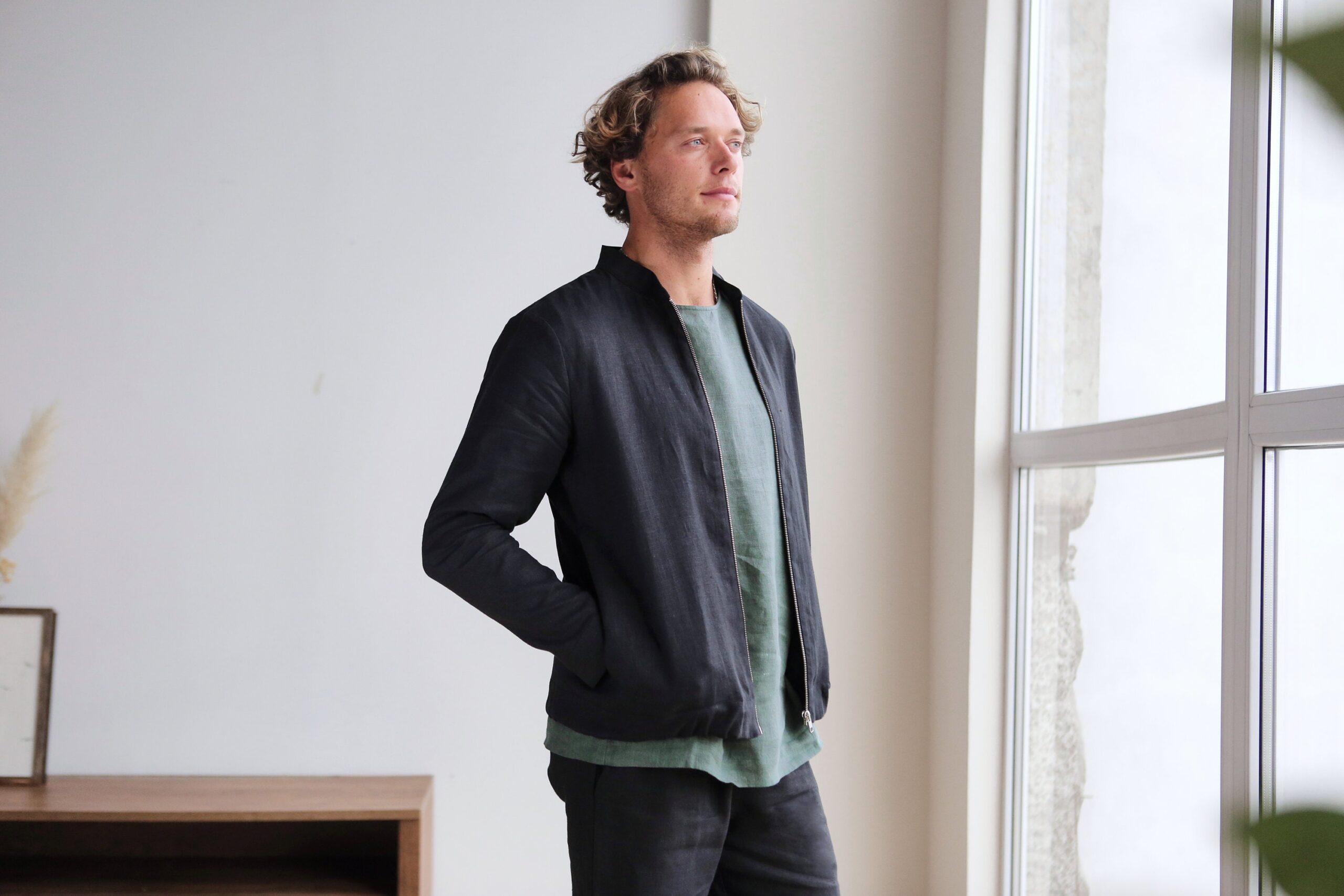 This elegant and comfy linen bomber jacket makes a luxurious and functional gift for that special man in your life.