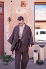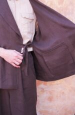 Inspired by kimono-style outerwear, the jacket drapes elegantly while providing comfort and ease of movement. Its loose, wide sleeves and flowy structure make it a perfect layering piece for any season.
