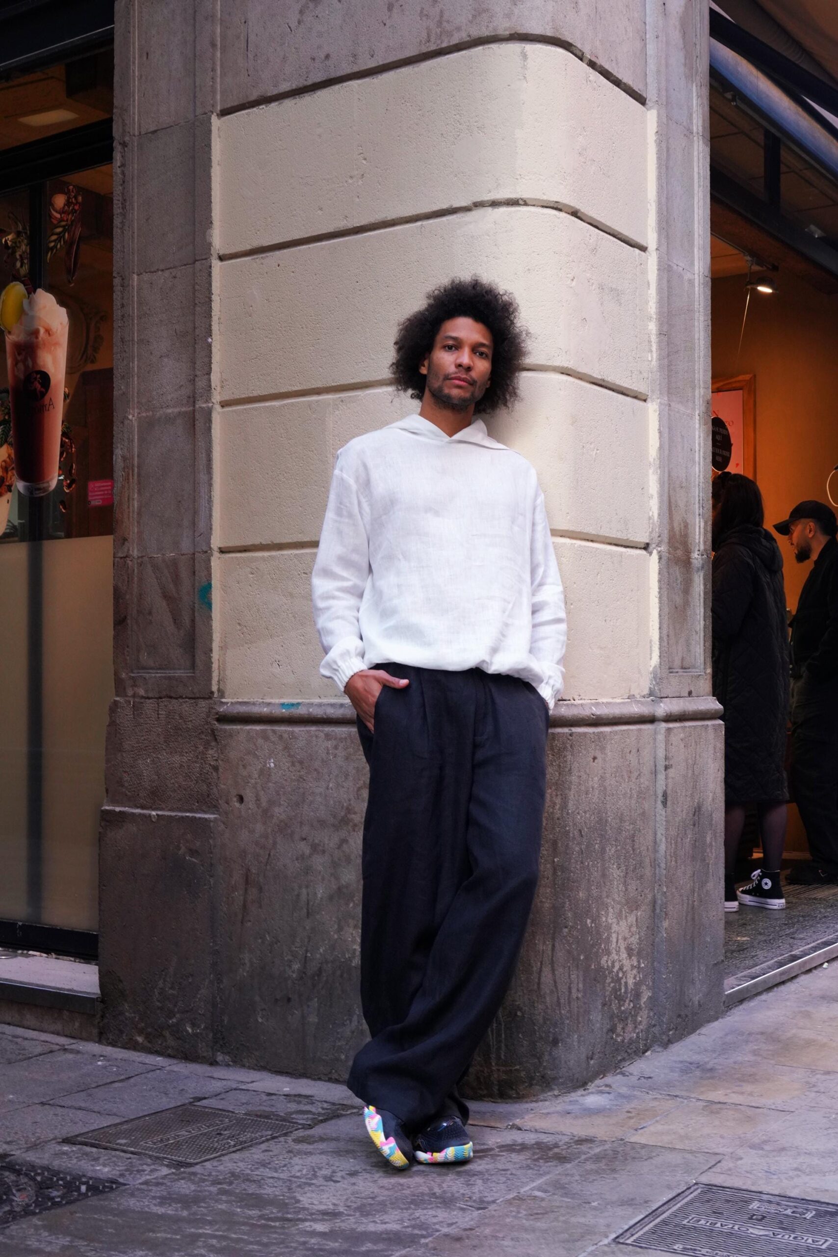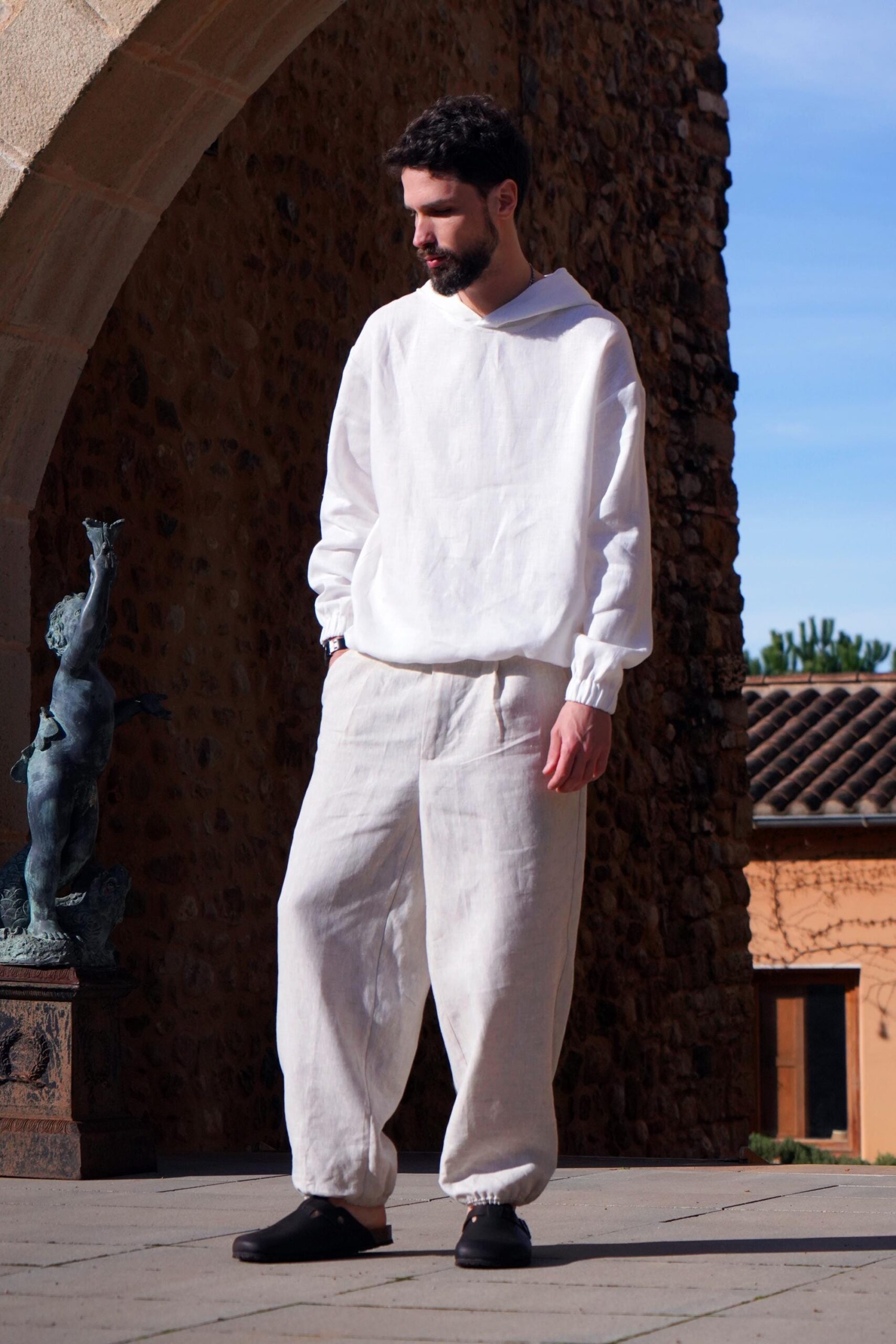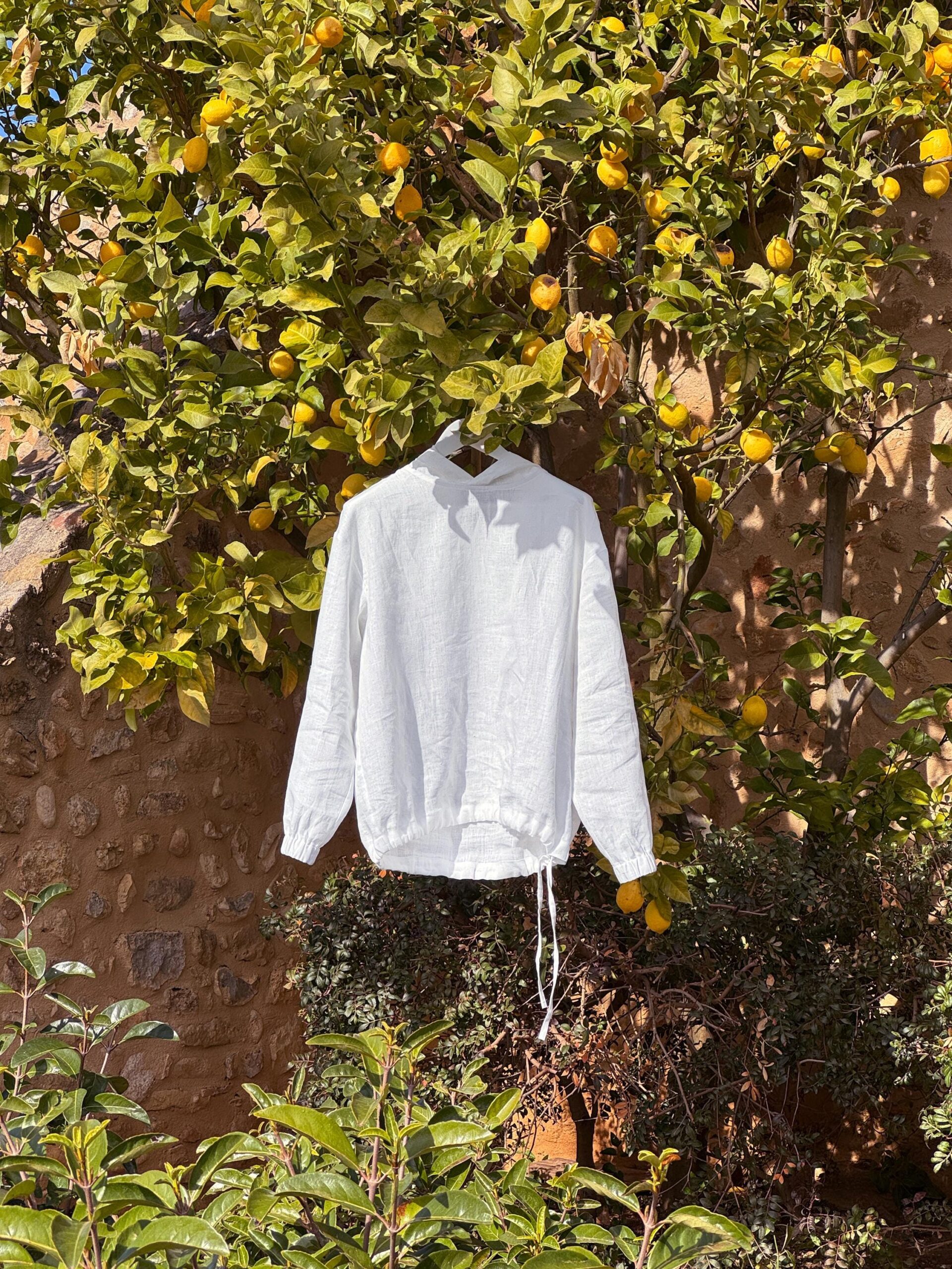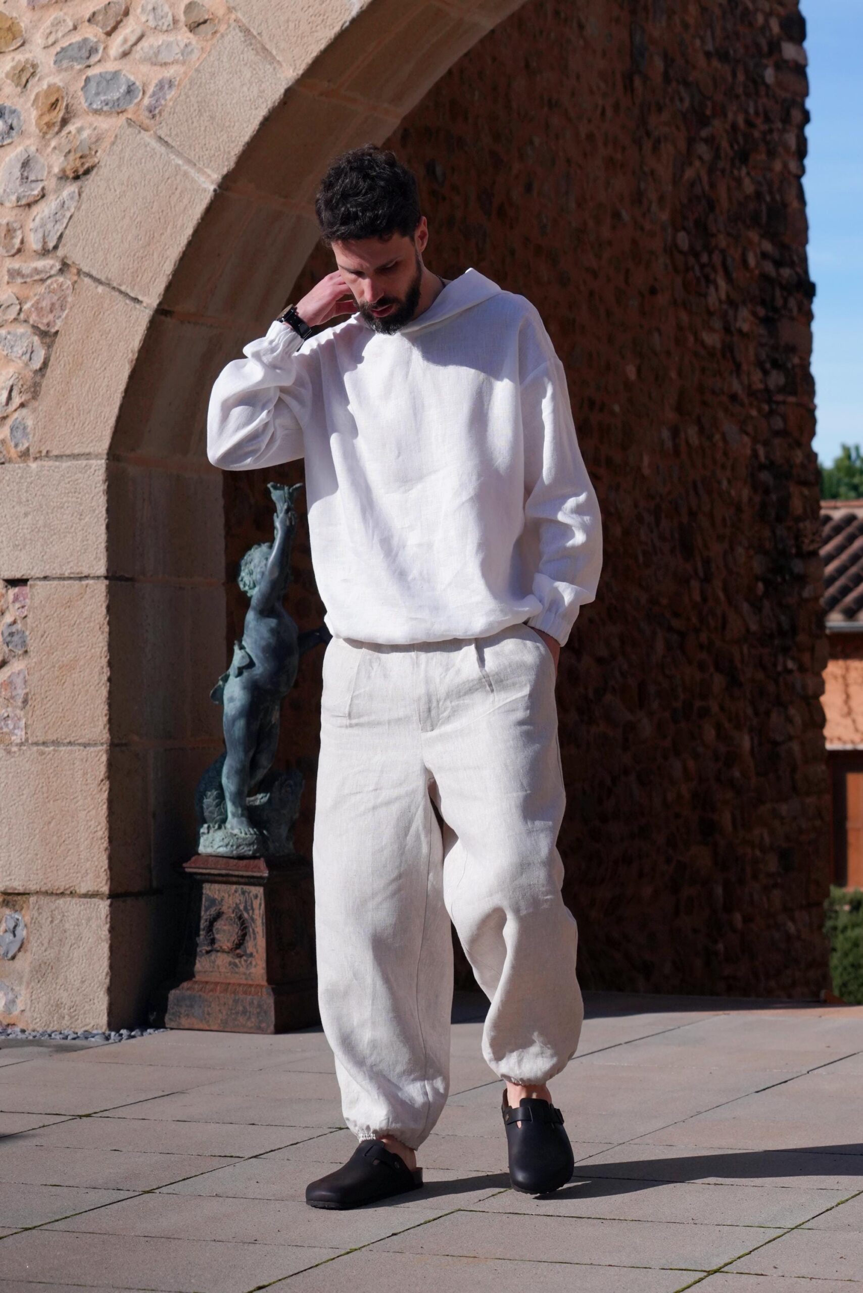 We've been thinking for a long time about creating a baggy linen hoodie that will look like a garment made of thick fabrics. Finally, we are ready to present our hoodie with a tie on bottom that creates a stylish baggy look and it's still linen:)