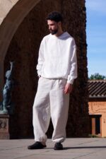 Linen has natural antibacterial properties, absorbs moisture, and allows the skin to breathe. Over time, it gets softer, making the hoodie even more comfortable with each wear.
