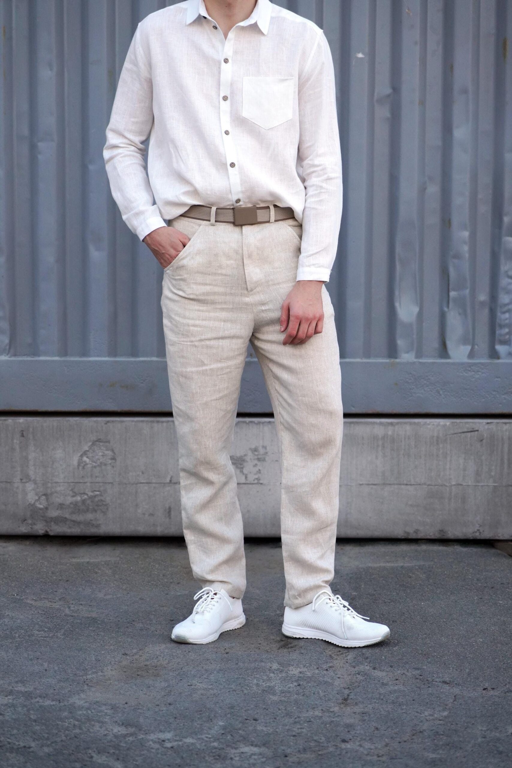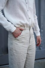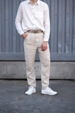 Straight-fit pants are made from 100% Linen and available in various colors.