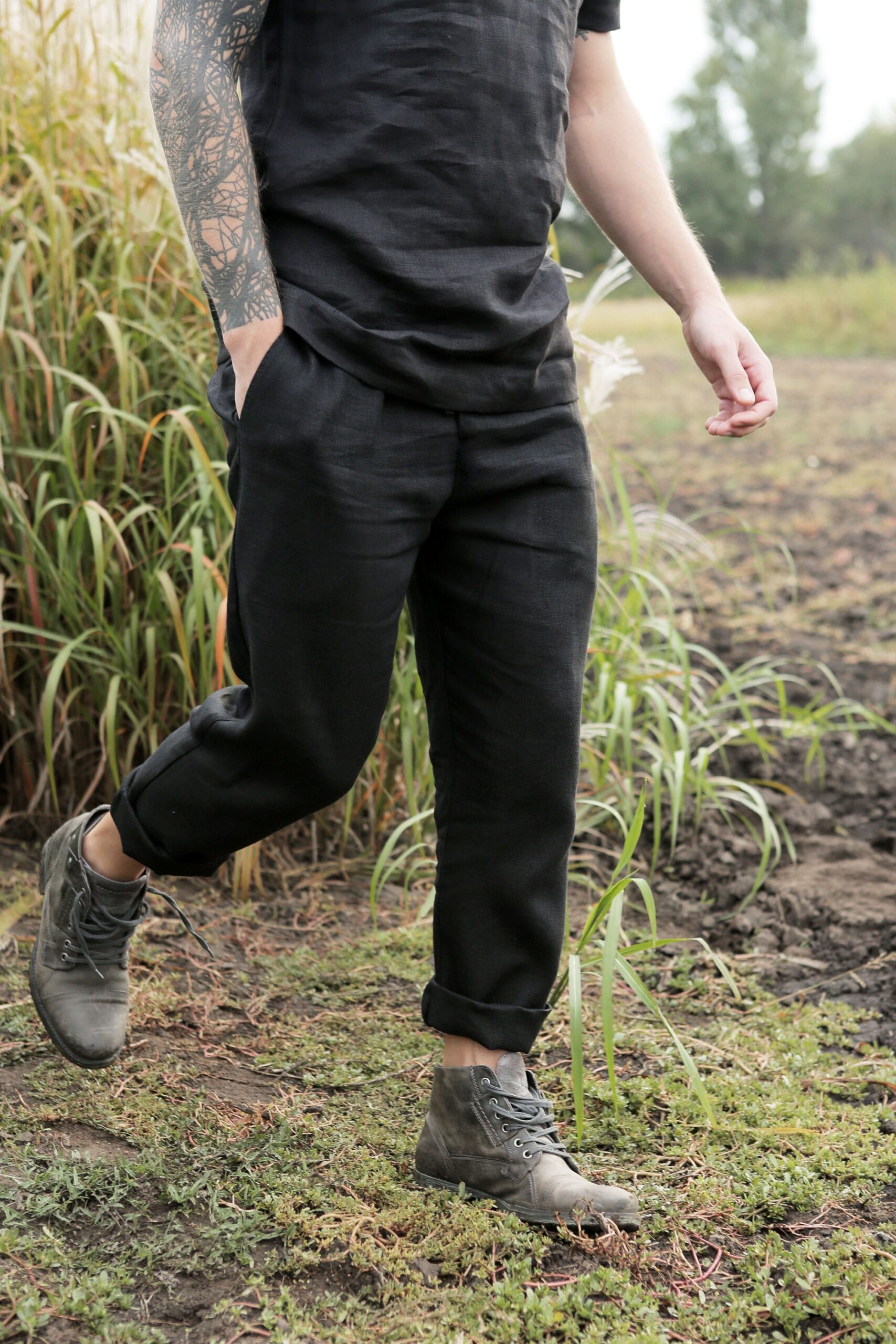 Loose Summer Trousers Minimal Edge Linen for Men Tapered Shape