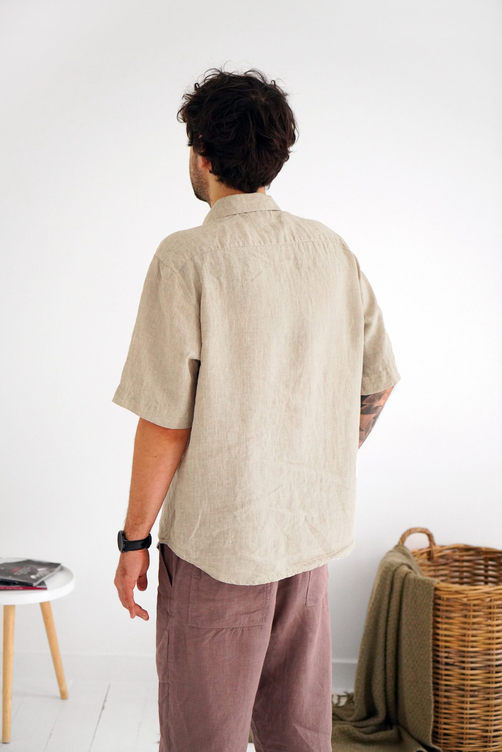 Relaxed Linen Shirt Sand Tone Linen for Men Casual Fit