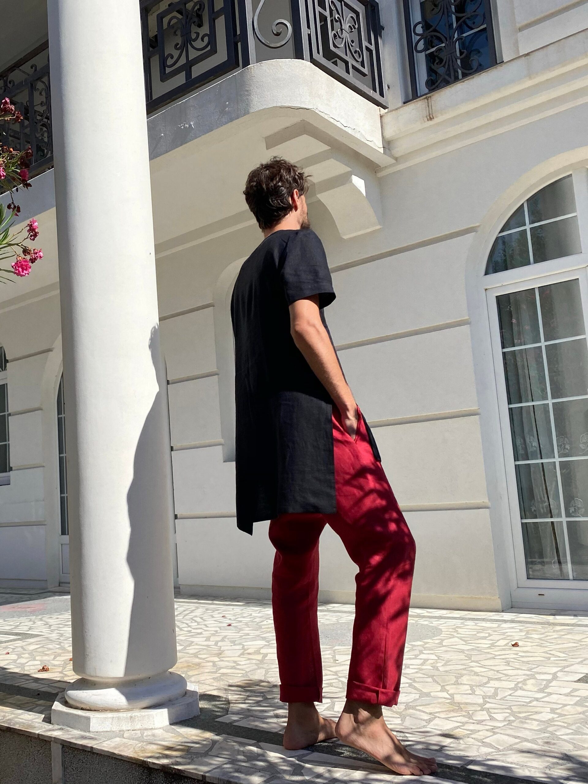 Tailored Linen Slacks Minimal Edge Linen for Men Loose Drape